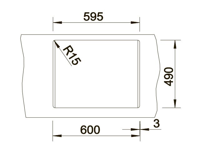 *Учитывать ширину пристенного канта в случае установки мойки возле стены или пенала.
