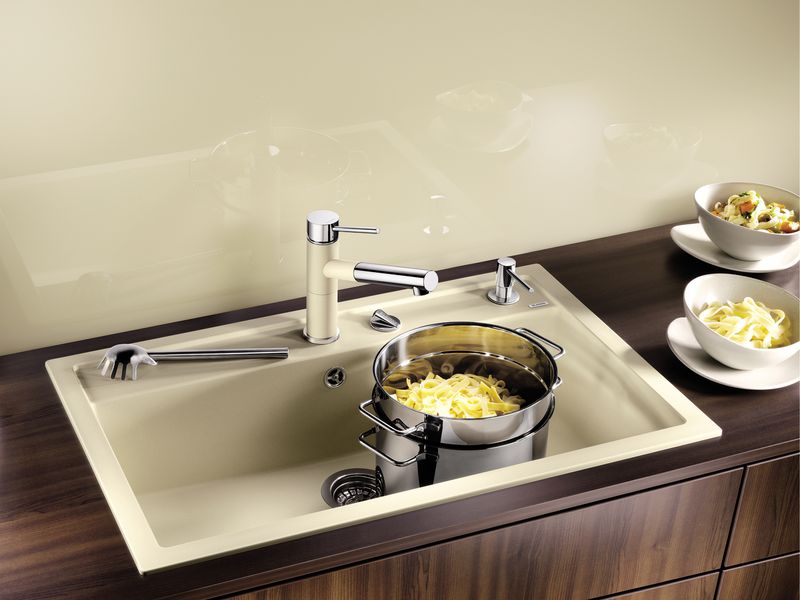 Безусловный фаворит: мойка BLANCO DALAGO с одной прямоугольной очень вместительной чашей соответствует последним тенденциям в кухонной моде. Широкая площадка под смеситель подчеркивает прямолинейность дизайна. Кроме смесителя на ней можно разместить и другие функциональные элементы и аксессуары.