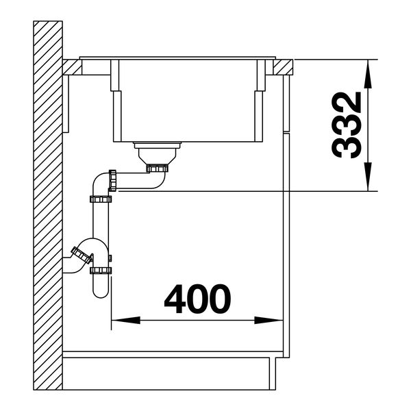 - *Учитывать ширину пристенного канта в случае установки мойки возле стены или пенала.