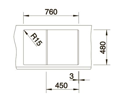 *Учитывать ширину пристенного канта в случае установки мойки возле стены или пенала.