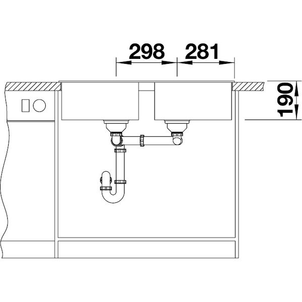 *Учитывать ширину пристенного канта в случае установки мойки возле стены или пенала.
