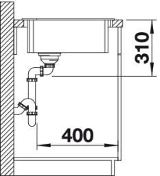 *Учитывать ширину пристенного канта в случае установки мойки возле стены или пенала.