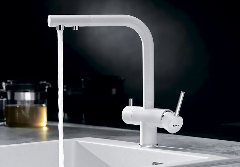 Гигиеничный: отдельный излив с дополнительным носиком для фильтрованной воды - нет смешивания с водопроводной водой.