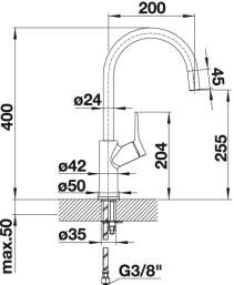 - Высокий изогнутый излив облегчает наполнение высоких кастрюль и ваз