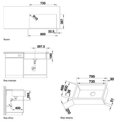- Доступны несколько вариантов установки: монтаж под столешницу, плоский кант IF для установки в один уровень или сверху в столешницу.