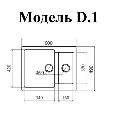 Гранитная мойка D.1 – многофункциональная полноценная модель с дополнительной чашей для мытья фруктов.