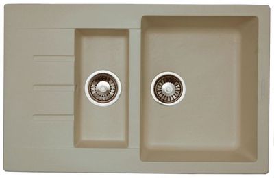 Гранитная мойка D.2 – многофункциональная полноценная модель с дополнительной чашей для мытья фруктов и небольшим крылом.