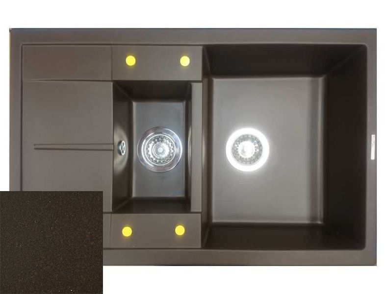 Многофункциональная мойка с двумя чашами: основная глубиной 19 см, дополнительная - 13 см.