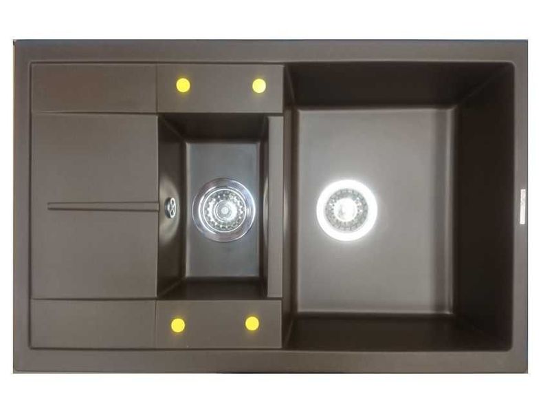 Многофункциональная мойка с двумя чашами: основная глубиной 19 см, дополнительная - 13 см.