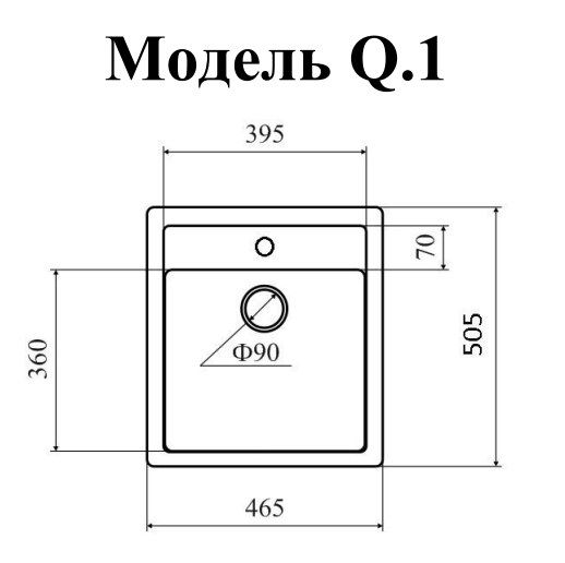 Гранитная мойка Q.1 – стильная, прямоугольная модель с элегантной полочкой под смеситель.