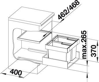 Максимальная высота соединительного элемента 265 мм над нижним уровнем шкафа.