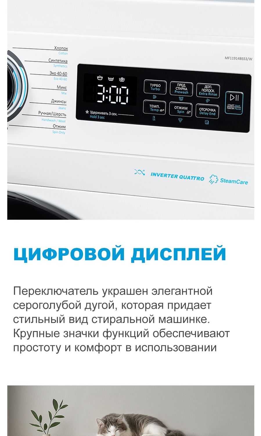 - Стирка с паром.