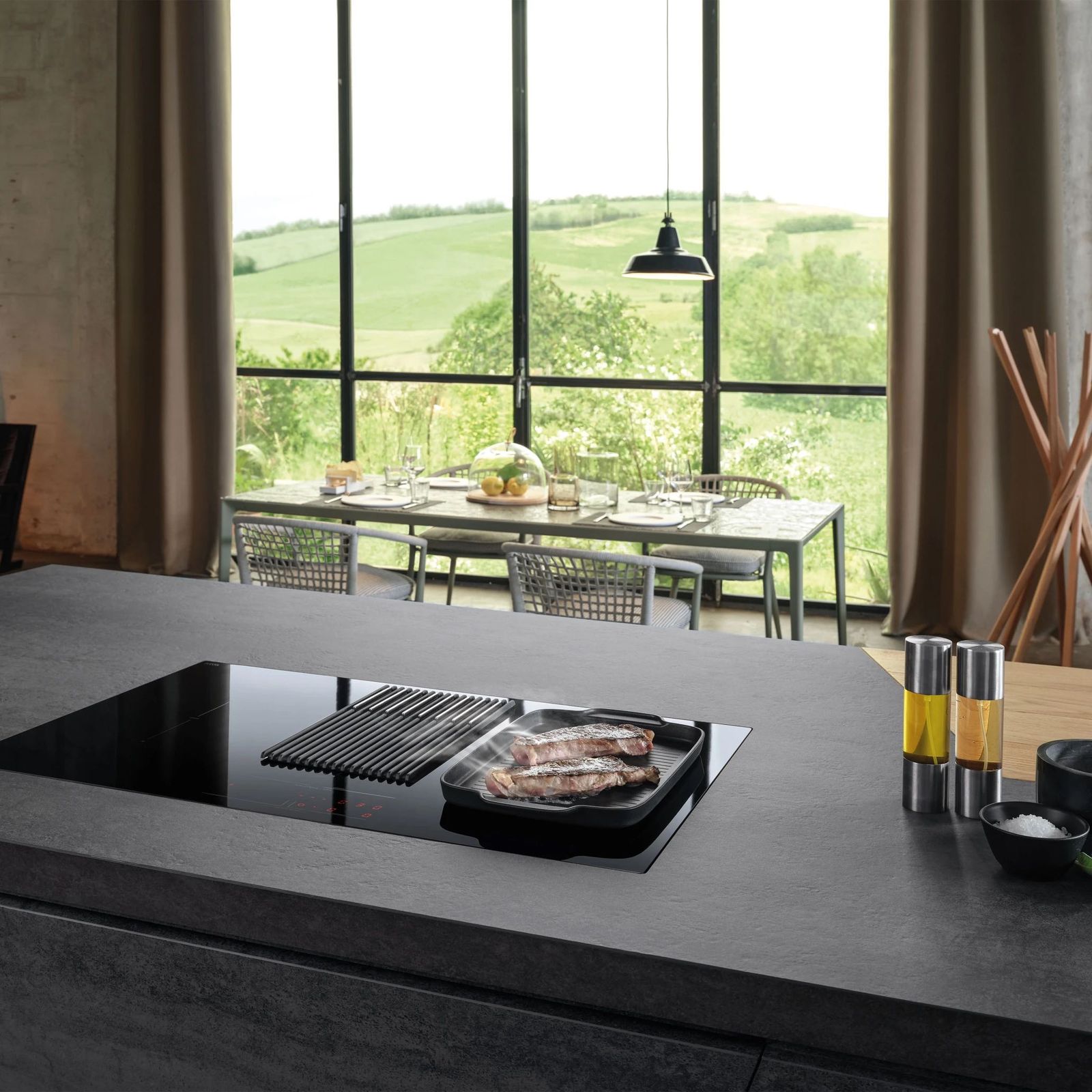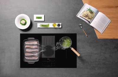 Приготовление любого рецепта становится проще, ведь изделие объединяет три прибора в одном: индукционную варочную панель, встроенную вытяжку и весы. Наконец-то вместе!