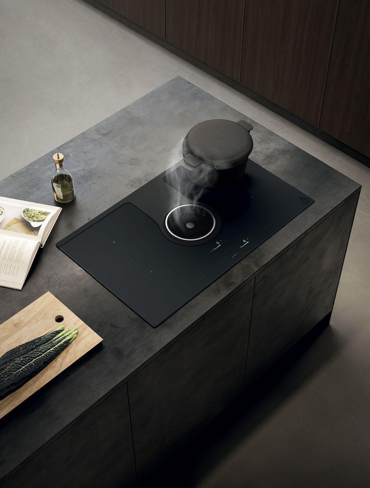 Варочная панель с вытяжкой, получившая престижную премию XXV Compasso d'Oro ADI, отличается исключительной эстетикой и энергоэффективностью класса A++.