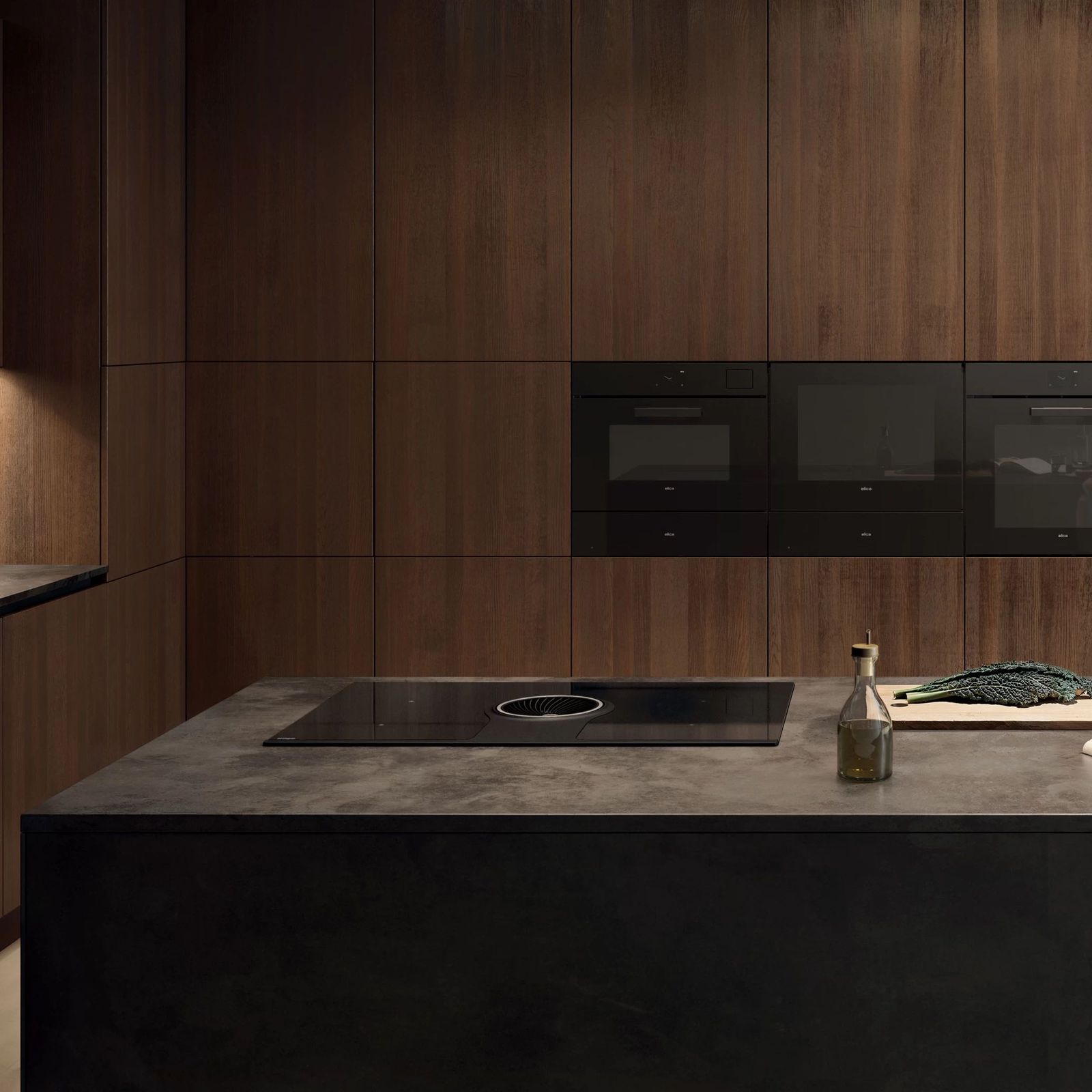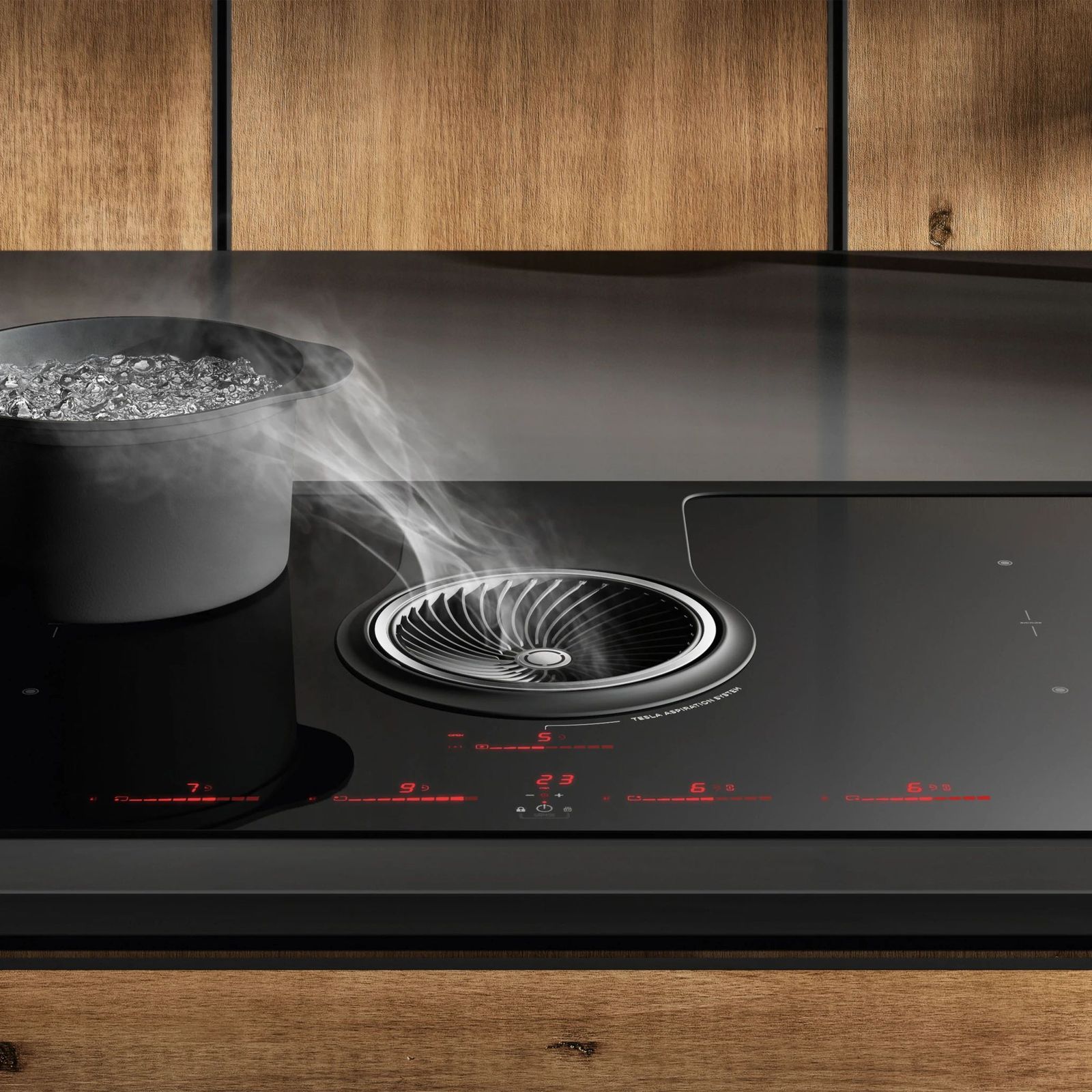 Индукционное приготовление соединяется с качественной аспирацией: центральной, мощной, бесшумной, класс А++. И сразу же начинается готовка!
