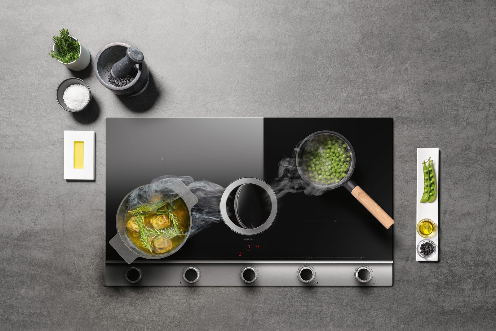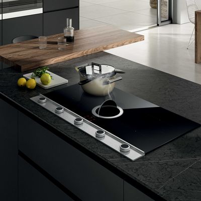 Ready to play? Наконец-то вы можете готовить с учетом эргономии и интуитивно понятным способом. Удобные ручки, аналоговое сенсорное управление touch & feel, самые современные функции и элементы управления характеризуют эту варочную панель. Зона приготовления отделена от зоны управления защитной перегородкой. Центральная заслонка из стекла и металла скрывает аспирационный блок, придавая изделию линейность с потрясающим "вау-эффектом". Воздух всегда остается чистым благодаря инновационному комбинированному фильтру для удаления запахов, жира и влаги, разработанному для простоты ухода и техобслуживания. Современные двигатели обеспечивают минимальный уровень шума и низкое энергопотребление даже при максимальной мощности. Специальные функции помогут растопить масло или шоколад без постоянного помешивания, оптимизировать медленное приготовление и избежать чрезмерного выкипания. Активация двойной варочной зоны позволит готовить даже в очень больших кастрюлях.
