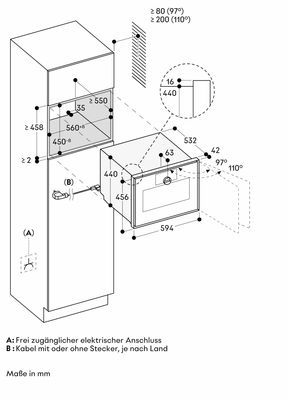 Угол открывания двери около 110° (в состоянии поставки) при необходимости можно уменьшить до около 97°.