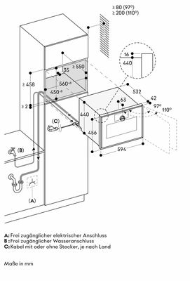 Угол открывания двери около 110° (в состоянии поставки) при необходимости можно уменьшить до около 97°.