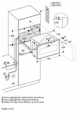 Угол открывания двери около 110° (в состоянии поставки) при необходимости можно уменьшить до около 97°.