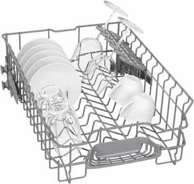 Класс шумовой эффективности — B. Уровень шума — 44 дБ(A). Продолжительность программы Eco — 3:55 часа. Максимальное количество комплектов — 10.