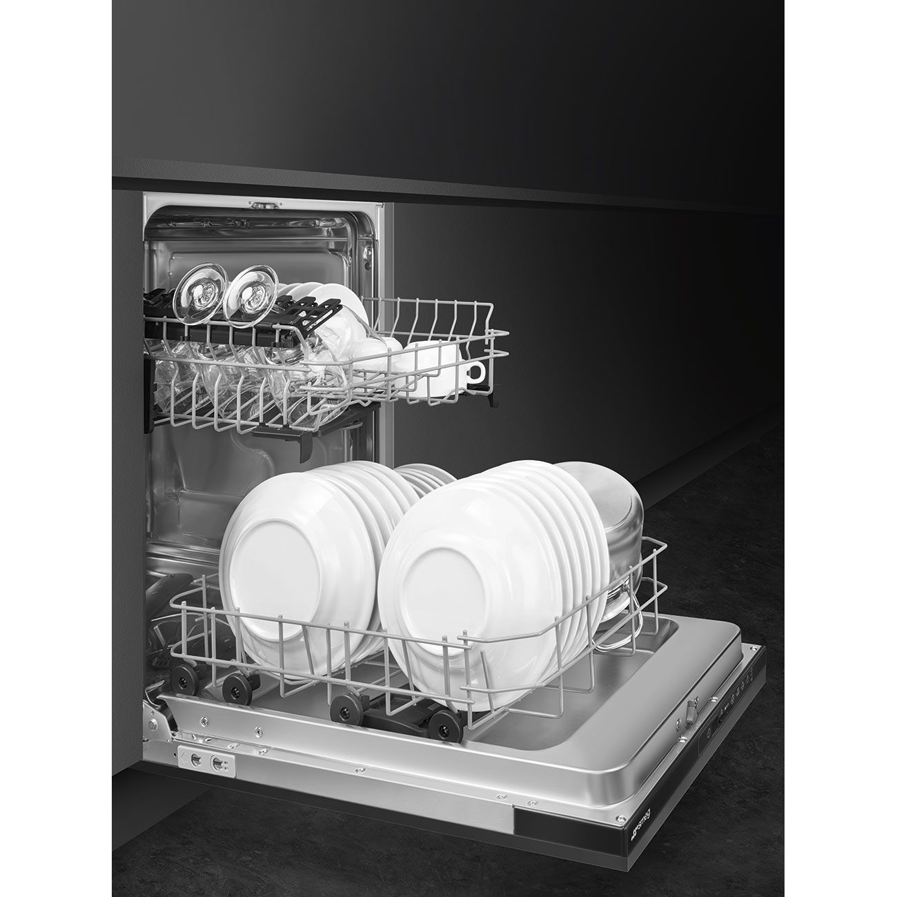 Модели с новыми петлями Flexi Fit можно устанавливать на кухнях с цоколем высотой всего 5 см. Благодаря этой новой конструкции петель мебельный фасад имеет скользящее движение снизу вверх, что позволяет избежать того, что фасад заденет цоколь. Acquastop: некоторые посудомоечные машины Smeg оснащены простым датчиком Acquastop: поплавок в нижней части, который необходим для предотвращения случайной утечки воды внутрь устройства. Эволюция Smeg в направлении более интеллектуальных и экологичных моделей привела к выбору инверторной технологии, которая значительно снижает энергопотребление.