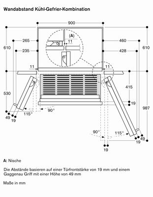 Угол открывания двери 115°, может быть зафиксирован на 90°.