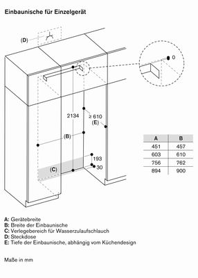 Запорный клапан для подключения воды должен быть расположен сбоку от устройства и всегда должен быть доступен.