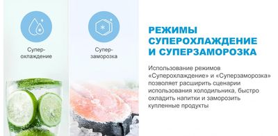 Режим суперохлаждения. Режим суперзаморозки. Система хранения в морозильной камере: 3 ящика