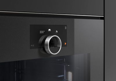 Духовой шкаф Gaggenau Serie Minimalistic. Встраиваемый заподлицо (flächenbündiger Einbau). Безрамная цельностеклянная дверь с электронным открыванием (grifflose Vollglastür mit elektronischer Türöffnung). Full-Touch-Display с поворотным кольцом из нержавеющей стали (Edelstahl-Bedienring). Дверь открывается вправо (Türanschlag: rechts), угол открывания 110° (может быть уменьшен до 92° при необходимости), направление не меняется. Термоизолированная дверь с пятерным остеклением (Fünffach-Verglasung).