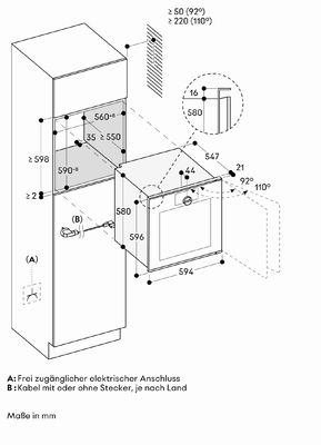 Важно: ниша без задней стенки (Nische ohne Rückwand vorsehen). Распределительная коробка должна быть доступна и находиться за пределами ниши (Anschlussdose muss zugänglich sein und außerhalb der Einbaunische vorgesehen werden).
