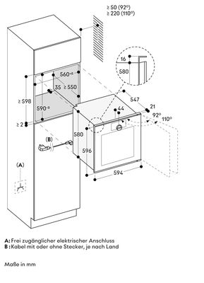 Установка под варочной панелью: минимальное расстояние между нижней частью варочной панели и верхней частью духовки — 15 мм. Учитывать инструкции по вентиляции и подключению варочной панели.