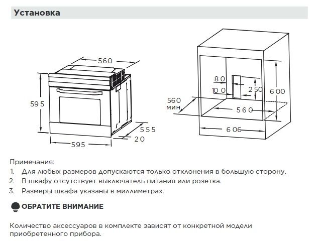 Габариты ниши для встраивания (Ш*Г*В) 560*570*600 мм