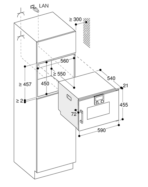 - Между прибором и фасадами соседних шкафов необходимо предусмотреть зазор мин. 5 мм.